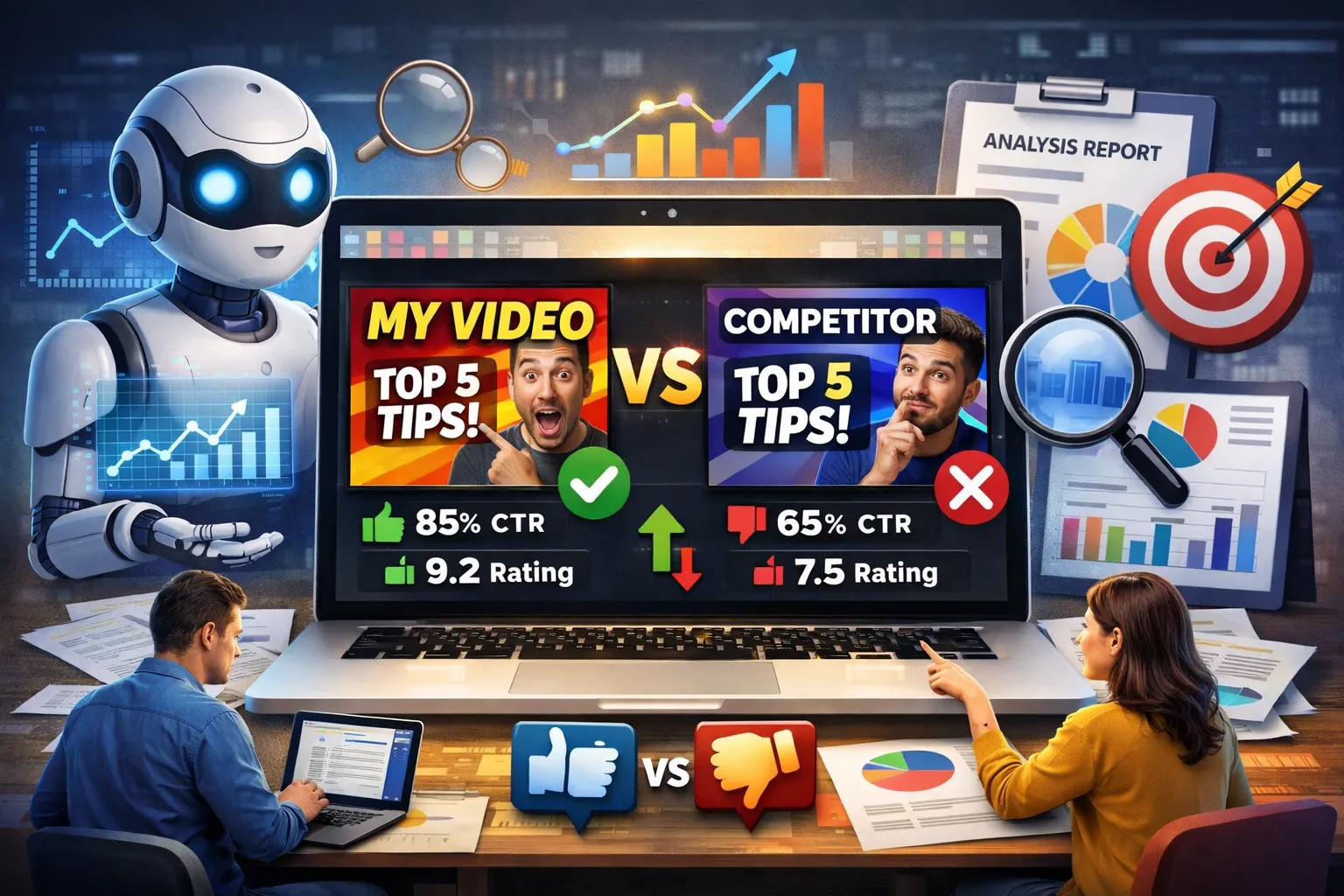 Upload your thumbnail and your competitor's thumbnail to get AI-powered performance scores, CTR insights, and actionable improvement suggestions in just 30 seconds with vidRankerAI.